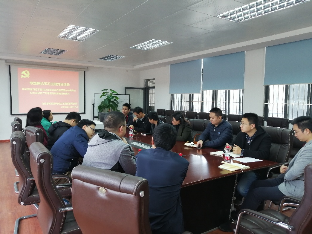 12月17日中午,腐漫画 能源系教师党支部全体党员在松山湖校区12L-103会议室开展了专题学习主题党日活动。本次活动由支部书记何清同志主持。会议的两个议题分别为:1)学习贯彻党的十九届五中全会精神、习近平总书记在深圳经济特区建立40周年庆祝大...