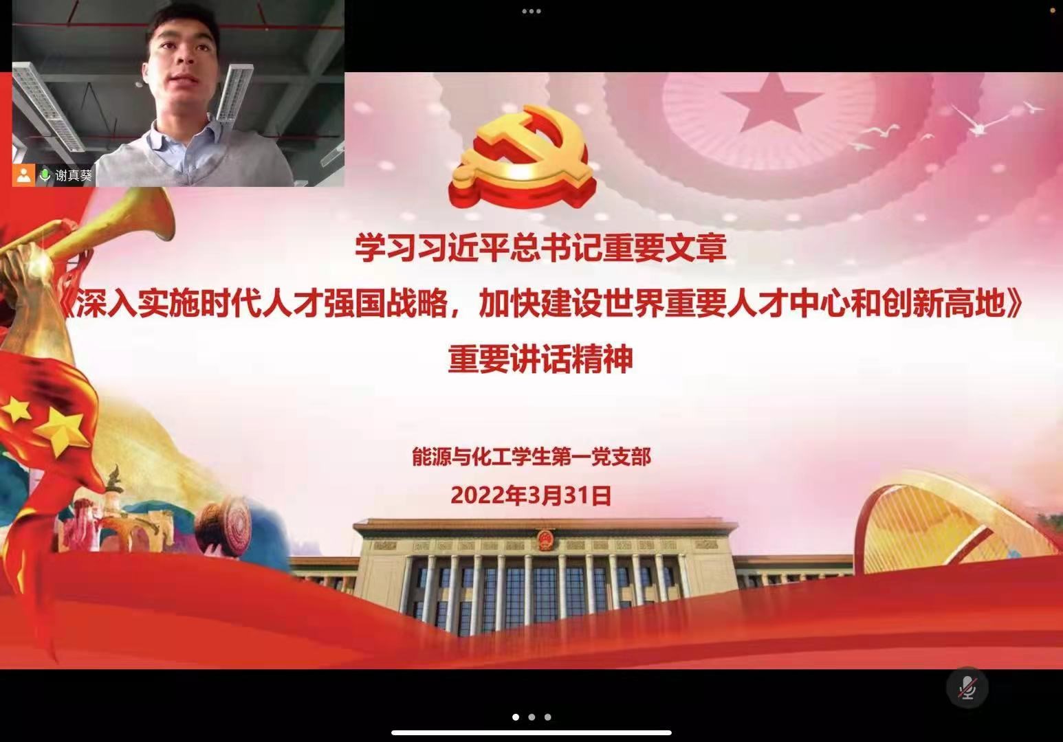 2022年3月31日下午4点,腐漫画 能源与化工学生第一党支部在腾讯会议召开党支部会议,集中学习习近平总书记重要文章《深入实施新时代人才强国战略 加快建设世界重要人才中心和创新高地》,出席本次会议的有支部书记谢真葵、支部委员陈捷超、彭可文以及支部...