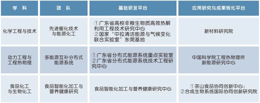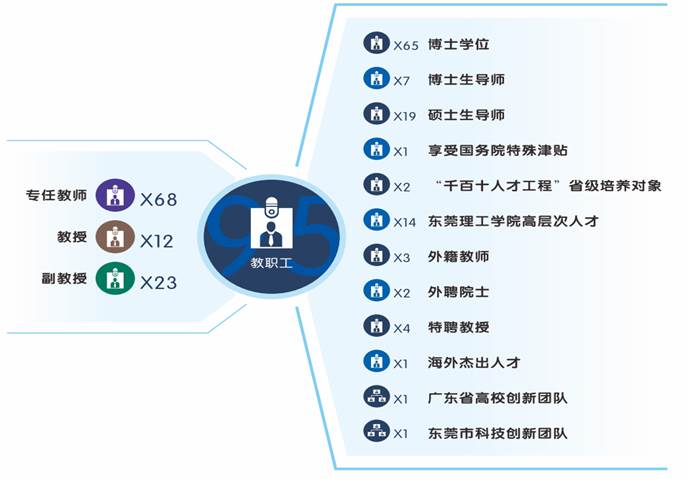 学院师资力量雄厚,现有教职工94人,具有博士学位58人,硕士生导师15人,另有双聘院士1人、特聘教授4人。建设有国家“中拉清洁能源与气候变化联合实验室”东莞基地,广东省分布式能源系统重点实验室、广东省高校创新团队、东莞市科技创新团队、省级工程技术研究中心、省级实验教学示范中心、东莞市重点实验室以及45个大学生校外实习基地。学院近年承担了国家“十三五”重点研发计划项目、国家自然科学基金项目等一批高层次科研项目,科研经费总额9000多万元。学院积极面向国家和广东省港珠澳大湾区区域经济建设发展需求,开展科学研究与技术服务,与国内高校、科研院所开展了紧密的学研合作,成果丰硕,为促进科技成果转化和地方经济建设的快速发展起到了积极作用。