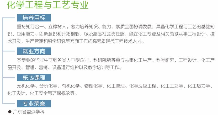 毕业生就业于珠三角优质企业(部分),包括:华为、中兴通讯、约克(美国)、茂名石化、国电电力投资集团、粤电集团、生益科技,大宝化工、格力、美的、松下、宝洁、联合利华、陶氏化学、中石化、立白、玛氏箭牌,中国储备粮管理集团有限公司。