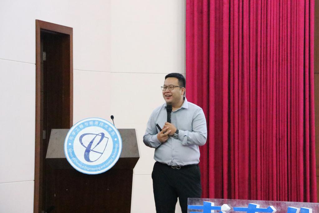 在学术会议中心报告厅举行了2021级新生入学教育系列讲座之优秀校友成功经验分享会。分团委负责人兼辅导员刘哲、辅导员张博、王馨,化能团学委员以及相关工作负责人出席活动。2006届应用化学专业校友纪明、2018届应用化学(卓越计划班)专业校友翁国伟受邀作分享。