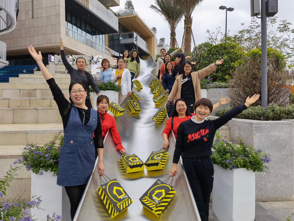 分工会组织全体女教职工前往华为生活区东莞滨湖万科里寻味美食,在松山湖湖畔踏青赏花庆祝节日。