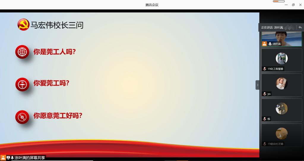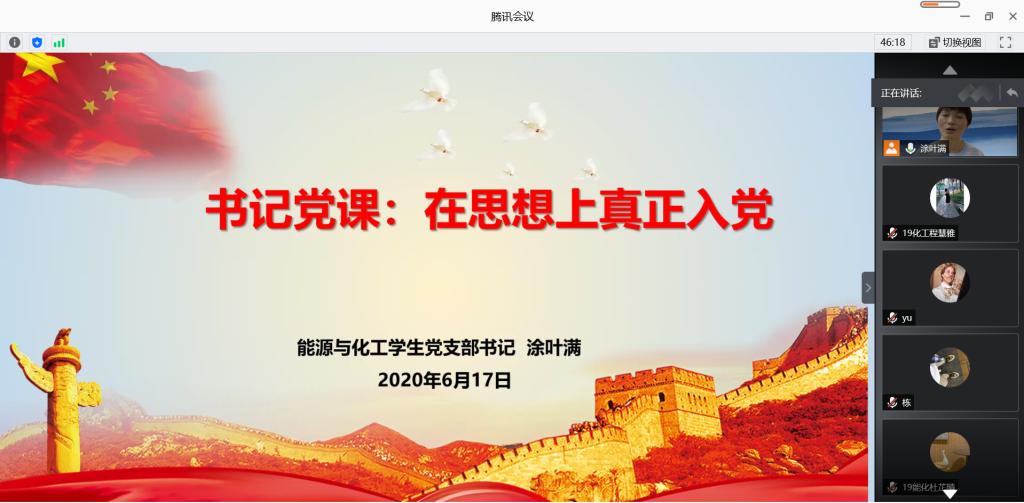 能源与化工学生党支部第八期34名入党积极分子齐聚腾讯会议,认真聆听学习了能源与化工学生党支部书记涂叶满书记讲授的党课《在思想上真正入党》。