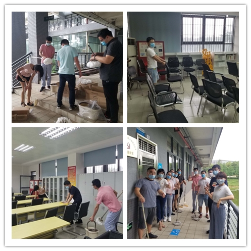 在活动中,大家齐心协力,干劲十足,纷纷拿起拖把、扫帚、抹布等工具,对综合实验楼12L的一楼公共区域和党员活动室进行了卫生大扫除,对卫生死角重点进行清扫。有的扫地拖地、有的清理有的清捡白色垃圾、装修垃圾以及各类废弃垃圾,有的清扫地面,有的清理损毁的横幅、宣传牌等。经过大家的共同努力,地面被清理的一干二净,清理的垃圾归集成堆,让整个环境都焕然一新,营造一个安全卫生、和谐温馨的校园环境。