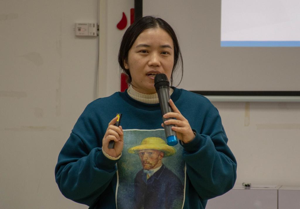 16级能源专业杨容澜曾担任学校KAB创业俱乐部主席,两次参加省赛。她在会上分享了往届大赛当中的优秀创新创业项目,说明寻找行业痛点和发展创新思维在创业项目当中的重要作用,告诫同学们要用敢为天下的勇气,突破自己,用无悔的青春,来创出一条有别于他人的创想之路。