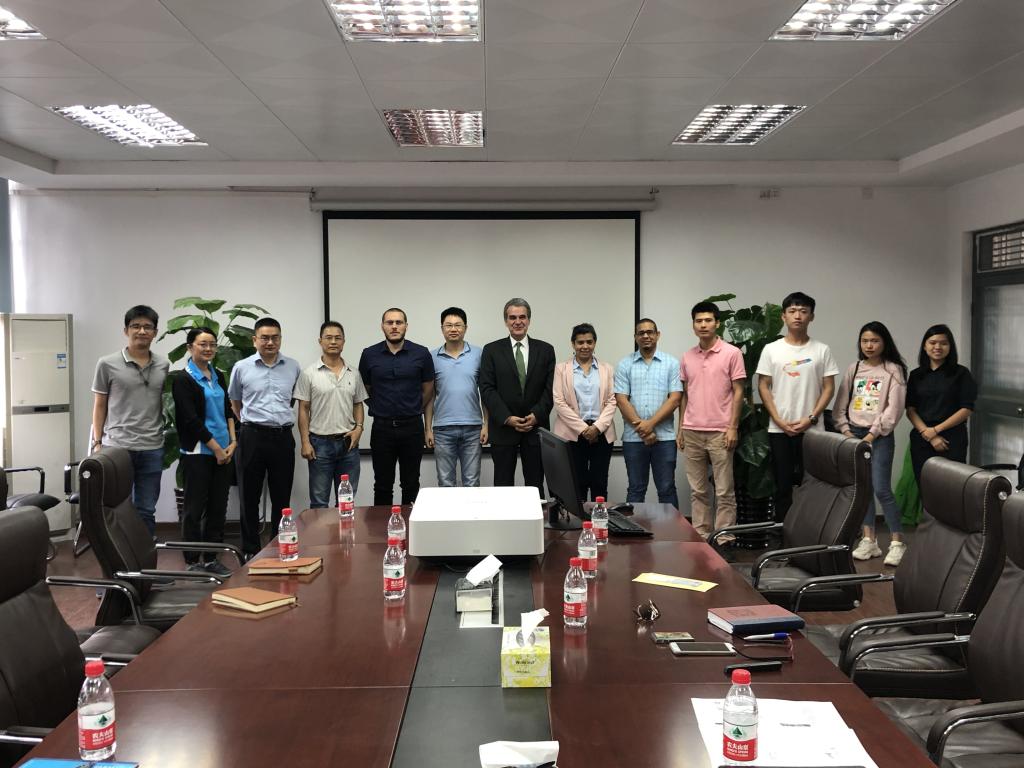 Noyola教授的主题报告主要介绍了关于采用生化技术对污水污泥进行有效处理方面的研究,并变废为宝,生产生物气甲烷的相关技术;Rosa博士的报告主要是关于生态风险评估,包括碳氢化合物和其他有机物质对小型哺乳动物和植物的影响研究,以及农药对环境的评估。最后Noyola教授就两校联合培养博士项目做了相关介绍,在场老师积极与Noyola教授和Rosa博士交流讨论,现场气氛活跃。