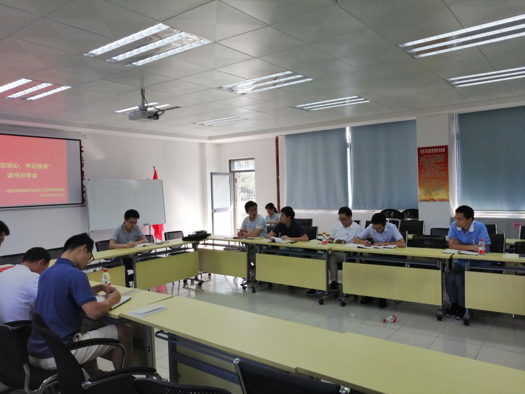 能源与动力工程系教工党支部全体党员在松山湖校区12L-102会议室举行了“不忘初心,牢记使命”主题党日活动,活动以读书分享会的形式进行,支部书记何清同志主持分享会。
