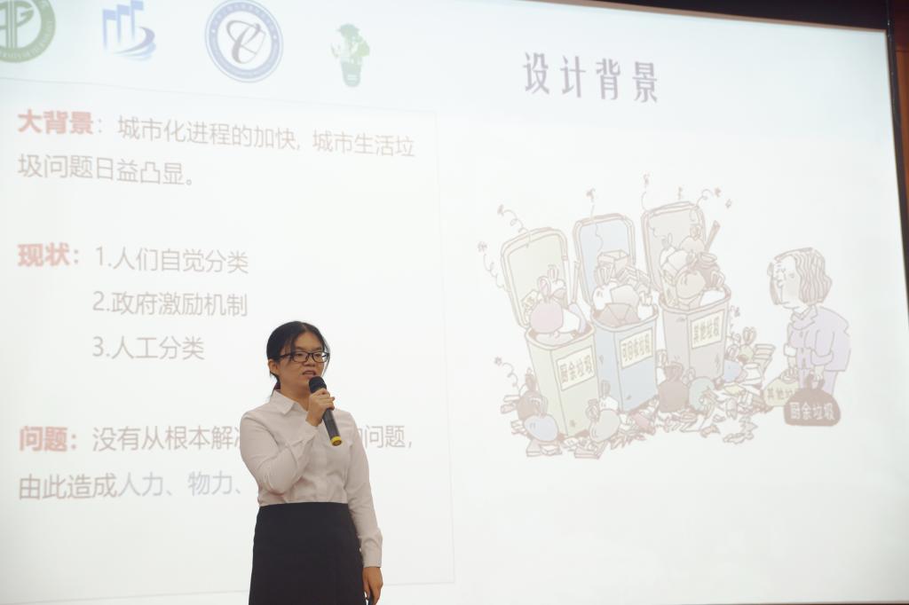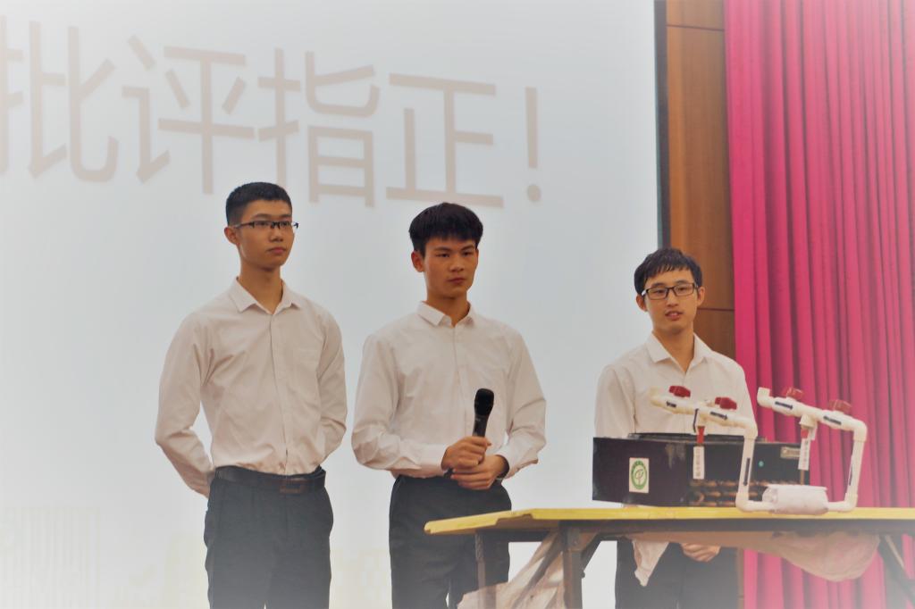 参赛作品类别分为设计理念类与科技实物类两种,各有六支队伍进行角逐,比赛过程分为PPT展示与答辩两个环节。在PPT展示中,每支队伍通过对参赛作品进行展示和其构造原理的讲解,充分准确地运用专业知识将自己团队作品的创新独特的设计理念和竞争优势毫无保留地展现给各位评委与在场的观众。他们严谨的科学态度、新颖的创业理念以及团队的合作精神博得评委们的一致好评和观众们的热烈掌声。在答辩的时候,面对评委提出的一个个专业性十足的问题,参赛队员也都能够用专业知识一一进行回答。