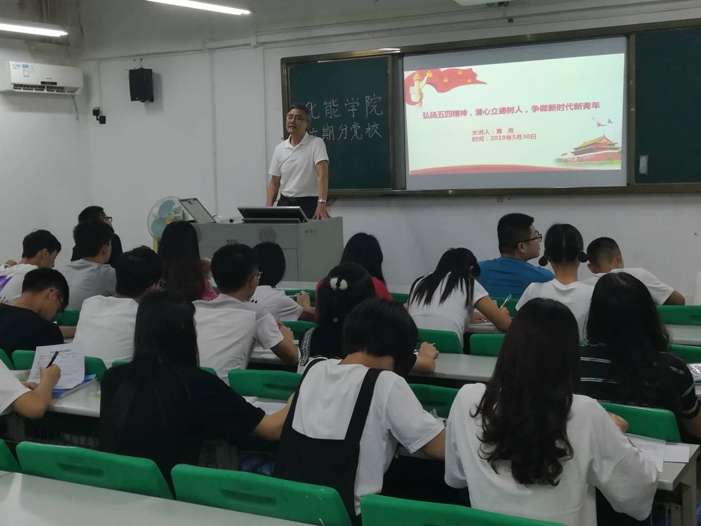党总支书记夏勇担任主讲教师,此次党课应到入党积极分子61人,实到52人。