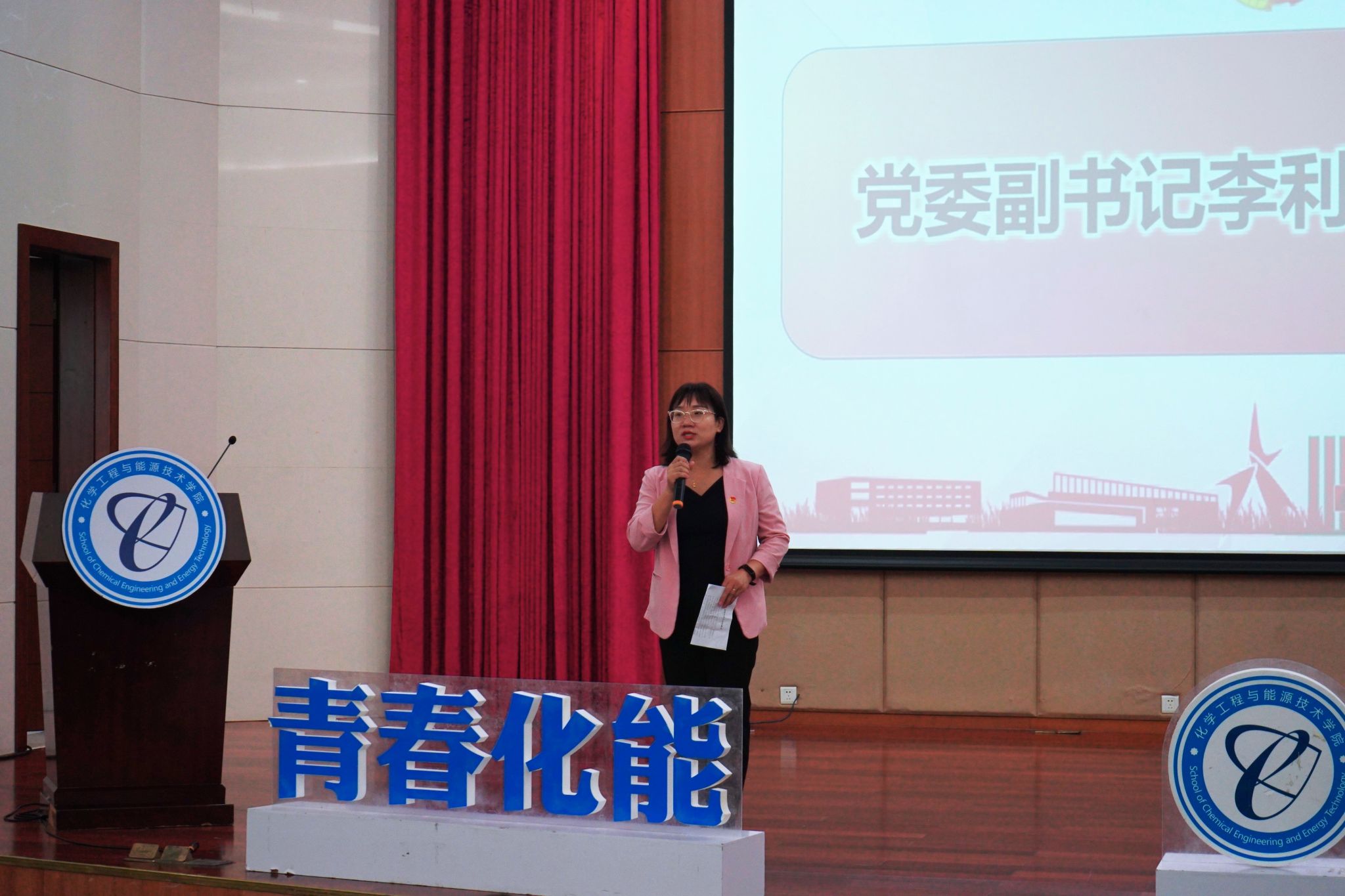 全体人员合唱《共青团团歌》,会议正式开始。政治辅导员王馨为大会致词,她提到:面对共青团事业,学生骨干应起带头作用,树立学院共青团工作的新理念,并对学院新一届团委、学生会的后续工作给予寄托与要求:一是:奉行“三更”理念。思想更加统一,目标更加明确,热情更加高涨;二是:深化“六有”理念。以学生思想,学习和生活需求为主线,努力使广大团员青年学习有榜样,实践有人才,困难有帮扶,发展有机遇,奉献有激励,成长有环境。