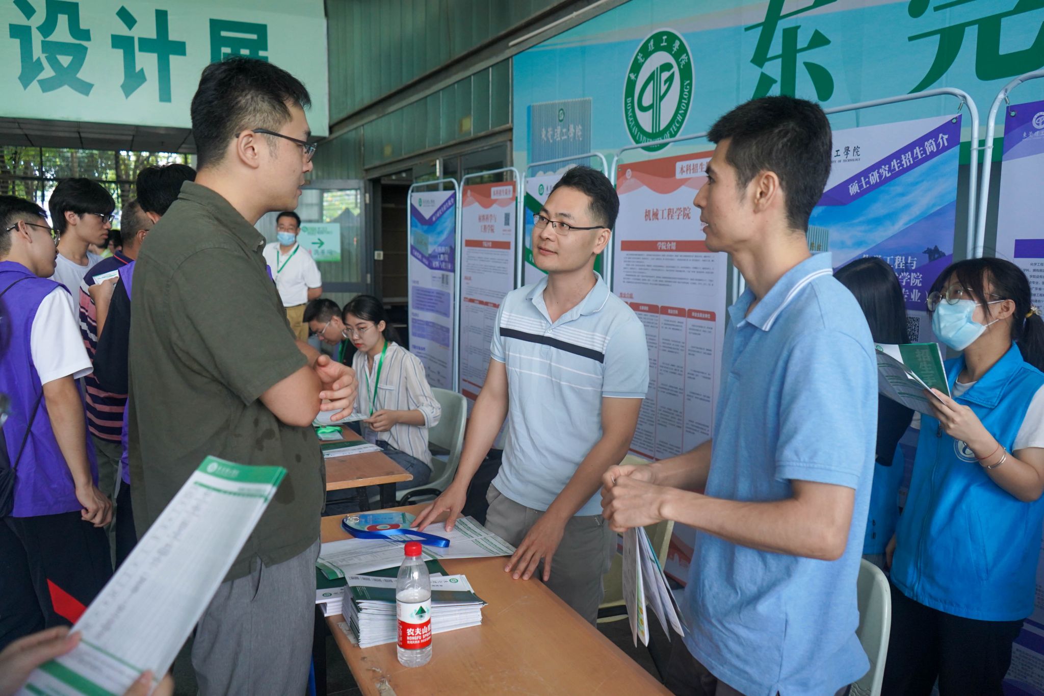 及各二级学院的咨询点和其他广东地区的高校资讯点,咨询展台气氛火爆,人流熙攘。考生和家长针对自己的兴趣和成绩等具体情况,来到对应的院系前进行咨询,现场工作人员和师生志愿者热心、耐心且细心,对咨询者的问题作出细致准确的回答。