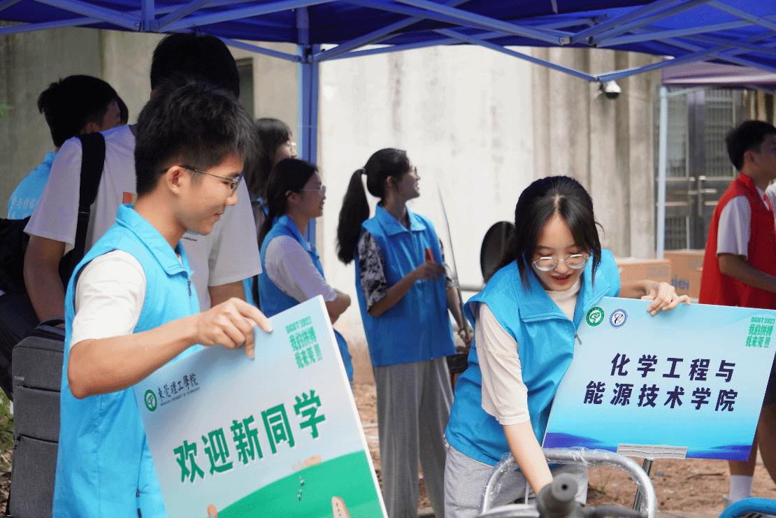 迎接了300余名萌新,2023级新生满怀期待而来,在莞工开启逐梦的人生新征程。笑语盈盈,彩旗翩翩,学校主干道两旁、各学院门口、宿舍楼下、迎新站点随处可见的欢迎标语以及各社团别出心裁的迎新表演,映衬着新生及其家人幸福的笑脸,营造出热烈浓郁的迎新节日氛围。