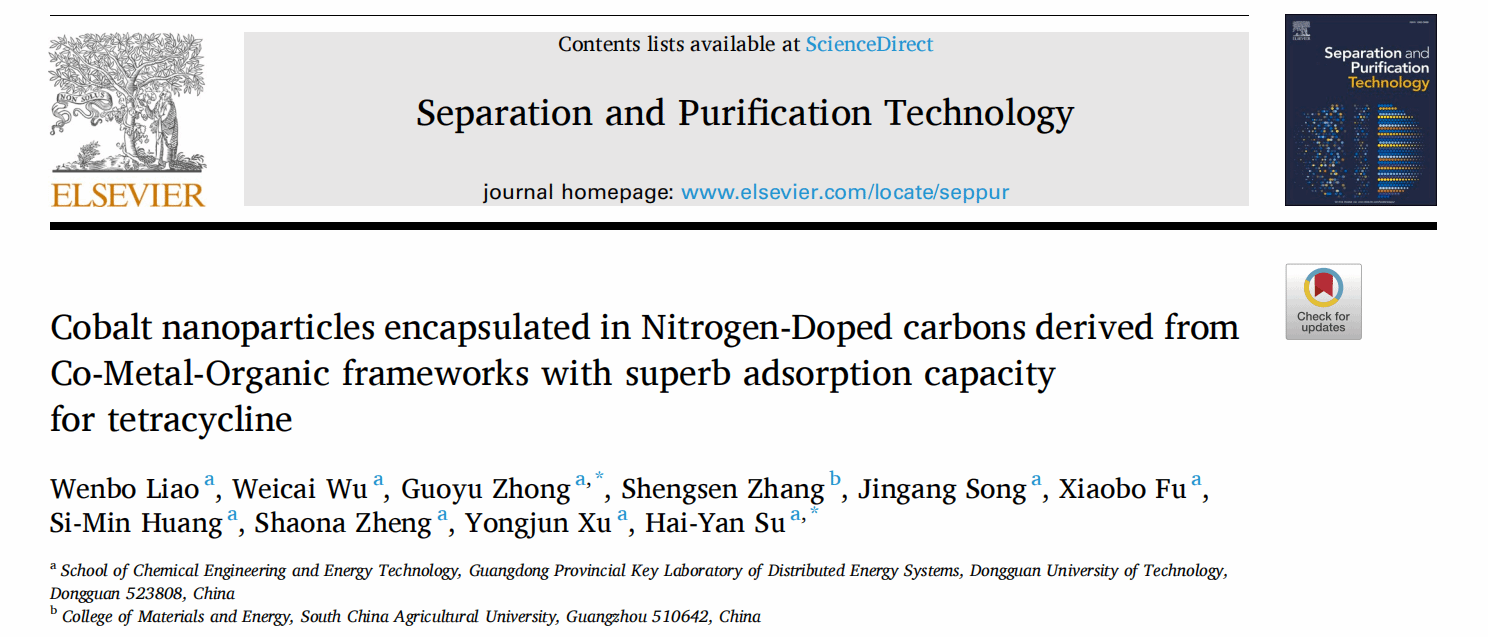 纳米材料与催化团队在化工领域TOP期刊发表环境修复吸附材料研究成果