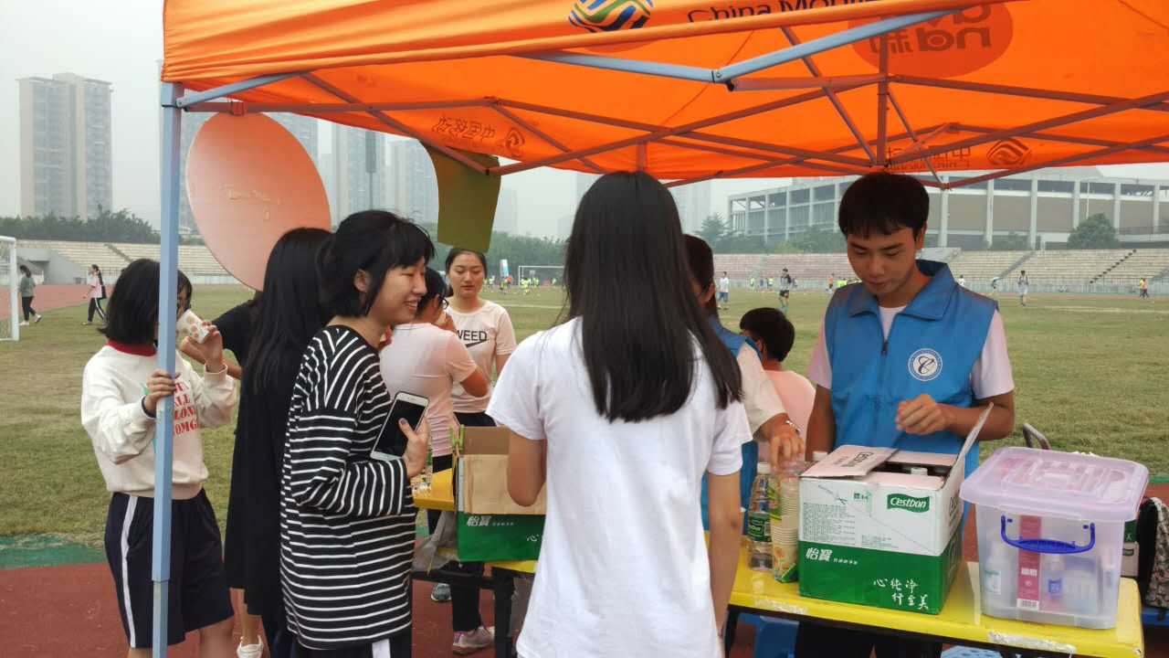 为了给在运动场体测同学做好储物、医疗、补给工作,弘扬青年志愿者“奉献,友爱,互助,进步”的志愿服务精神,腐漫画 志愿服务站组织志愿者于2017年11月18、19日在运动场为参加体测的同学补给能量。