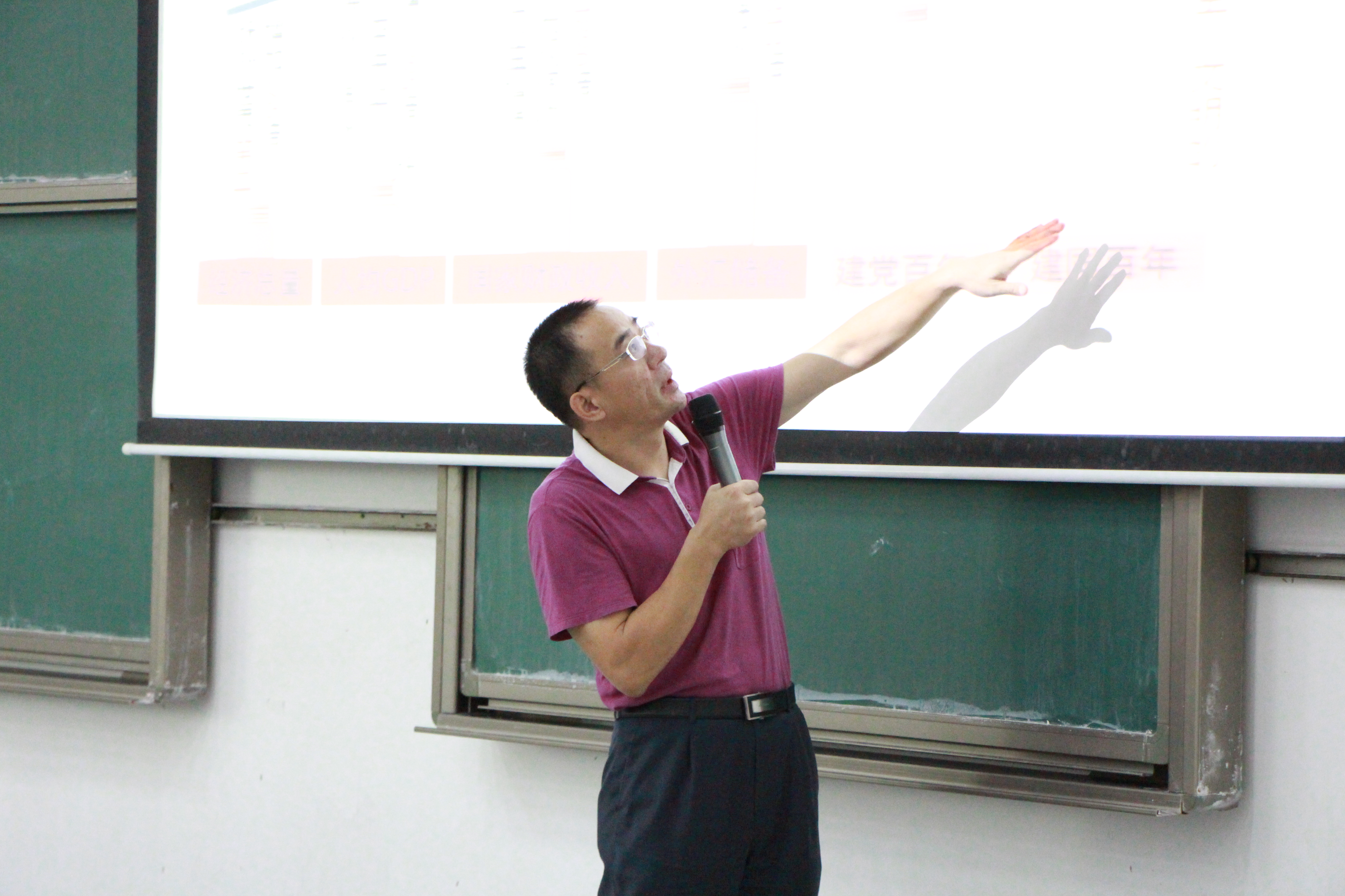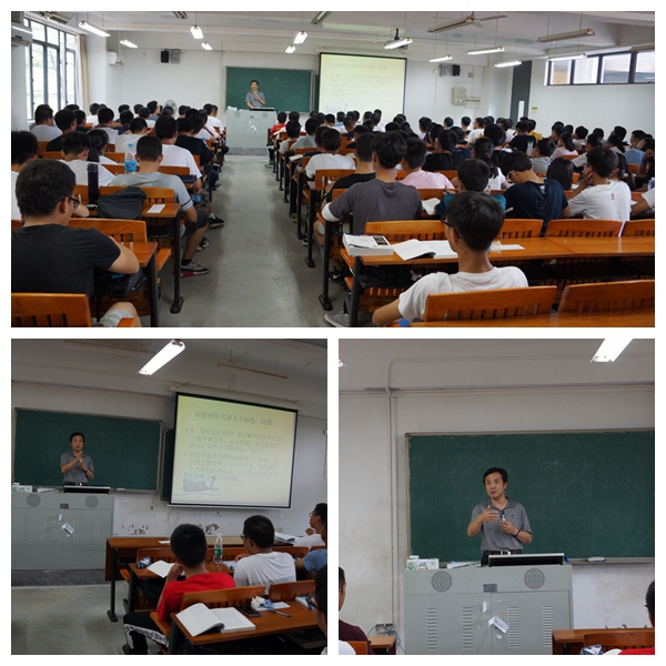 2017年9月28日早上8时30分,学校副校长杨敏林教授在松山湖校区6F101课室为腐漫画 2017级化工及食品专业讲授《中国近现代历史纲要》的第一课。