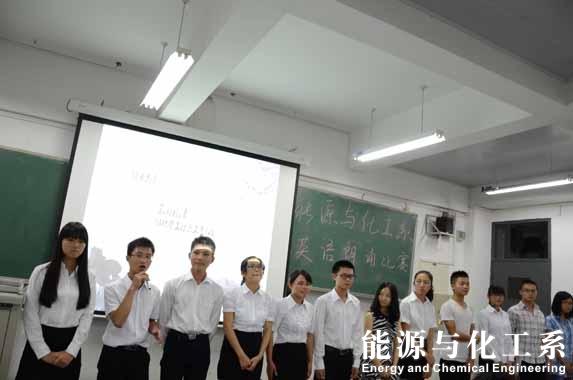 10月16日晚上19:30,能源与化工系英语朗诵比赛在教学楼7B409正式举行,出席嘉宾有团总支学生会主席团,助班植伟潘,谢雯菲,以及14级各班的新生代表和12位参赛选手。