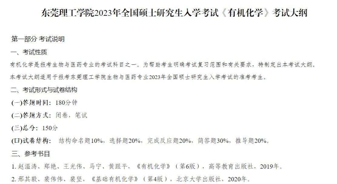 腐漫画 2023年全国硕士研究生入学考试《有机化学》考试大纲 第一部分 考试说明一、考试性质有机化学是报考生物与医药专业的考试科目之一。为帮助考生明确考试复习范围和有关要求,特制定出本考试大纲。本考试大纲适用于报考腐漫画 生物与医药专...